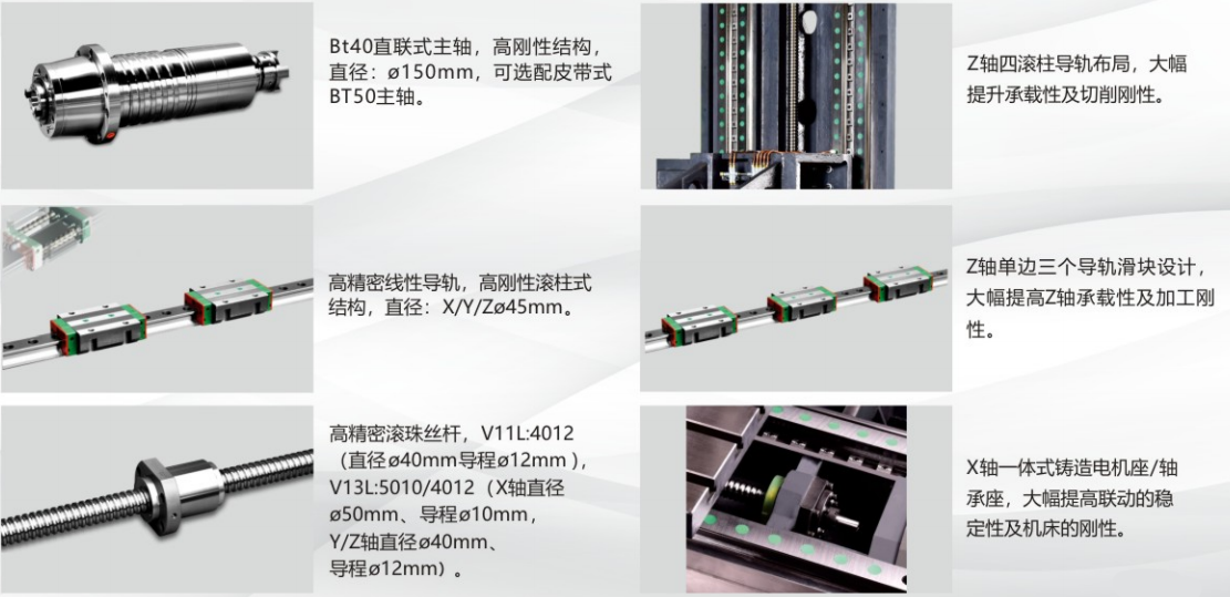 4:Z轴采用进口超负荷滚柱线轨,标准六个滑块,刚性好,精度高,重切削能力强