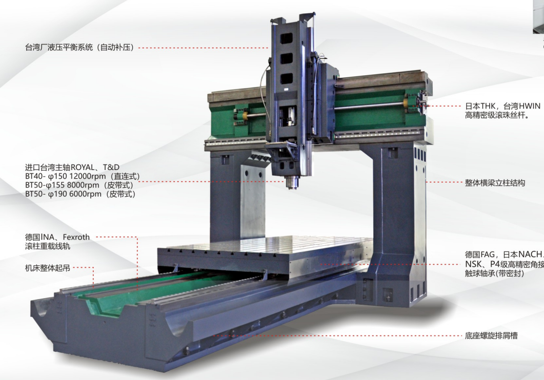 1:X轴和Y轴线轨,Z轴硬轨设计,适合重切削又确保精度