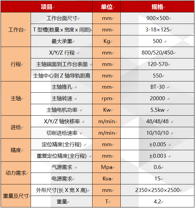 2. 采用21T伞式伺服刀库,换刀时间仅2.5秒,响应时间快而迅速。